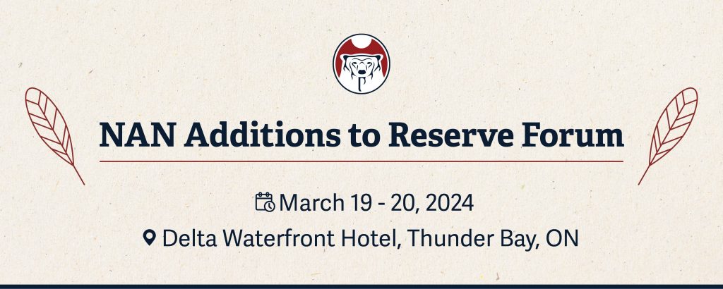 NAN Additions to Reserve Forum will take place in Thunder Bay March 19 – 20, 2024.