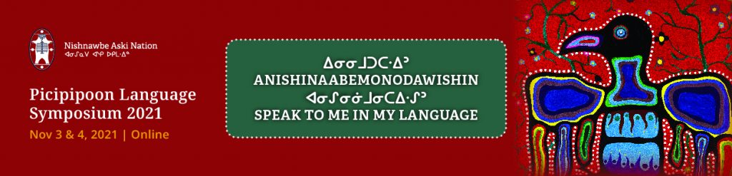 Nishnawbe Aski Nation (NAN) Picipipoon Language Symposium 2021 is a unique cultural and educational forum. (Picipipoon means “Winter is Coming”). The theme is Speak to Me in My Language and was planned to connect educators, policy makers, and youth to promote learning and teaching Anishiniimowin / Mashkiikomowin (Mushkegomowin) / Anishinaabemowin (Language) in communities across the north